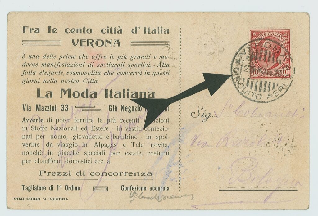 A.S.(C): VERONA – CA.S.(C): VERONA – CIRCUITO AEREO – e data al centro, su una riga.
