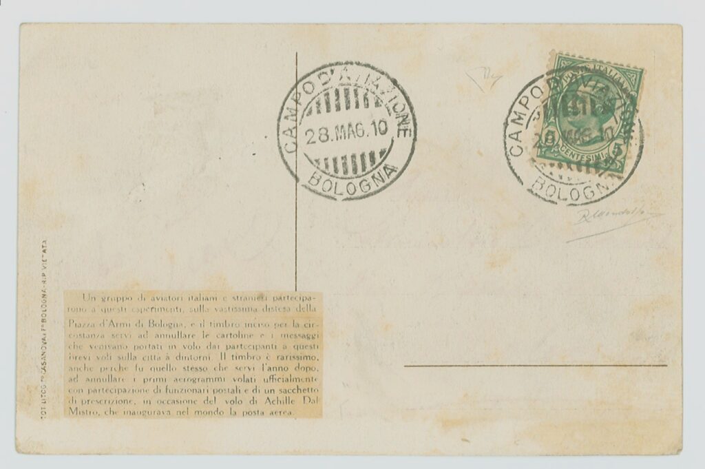 “COMITATO / CAMPO d’AVIAZIONE / BOLOGNA / 22 – 30 maggio 1910”