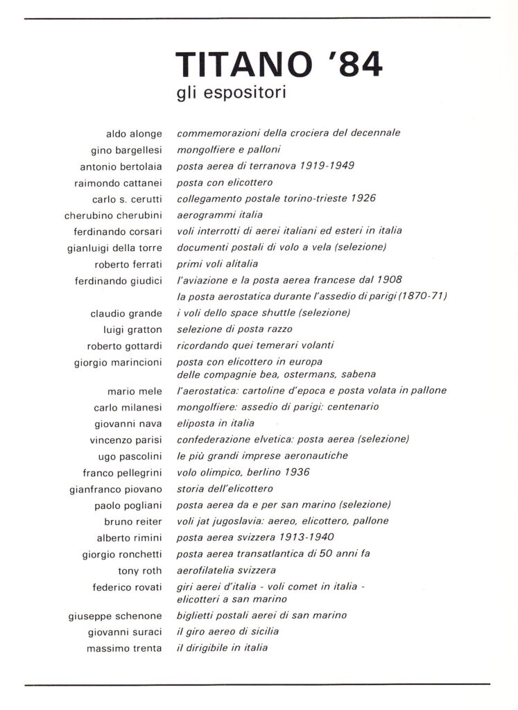 I soci aderirono all’iniziativa con grande entusiasmo e furono ben 30 gli espositori con collezioni di grande pregio, alcune delle quali erano dedicate specificatamente al volo aerostatico.