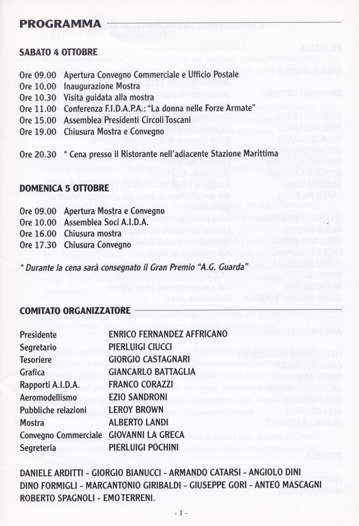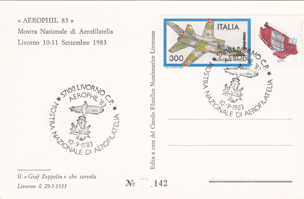 Si trattava della quarta manifestazione aerofilatelica che veniva organizzata dal CFNL e la prima, nel 1972, ebbe anche il riconoscimento dell’allora Presidente della Repubblica Giovanni Leone. Questa volta la manifestazione, che si svolgeva magnifici locali del Terminal Crociere del porto di Livorno, aveva il patrocinio della Regione Toscana, del Presidente della Federazione tra le Società Filateliche Italiane e del Sindaco di Livorno.