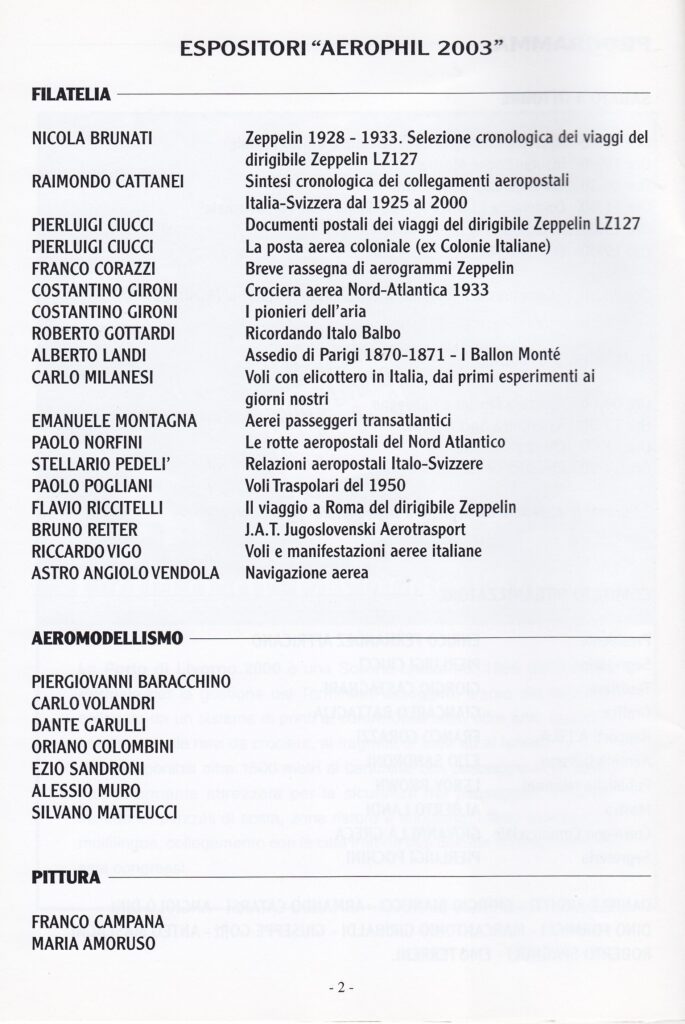 Come ben evidenziato dal Presidente del CFNL, Enrico Fernandez Affricano, non si poteva scegliere migliore occasione per realizzare questa manifestazione aerofilatelica, vista la grande quantità di imprese meritevoli di celebrazione nel 2003.