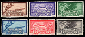 Per festeggiare l’avvenimento l’amministrazione postale italiana emise una serie di 6 francobolli per il territorio metropolitano e altrettanto per ciascuna delle Colonie (Cirenaica, Tripolitania, Isole dell’Egeo).