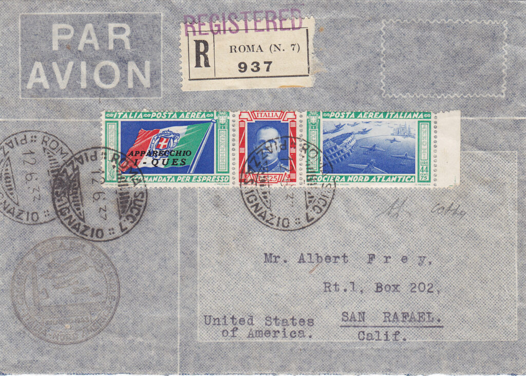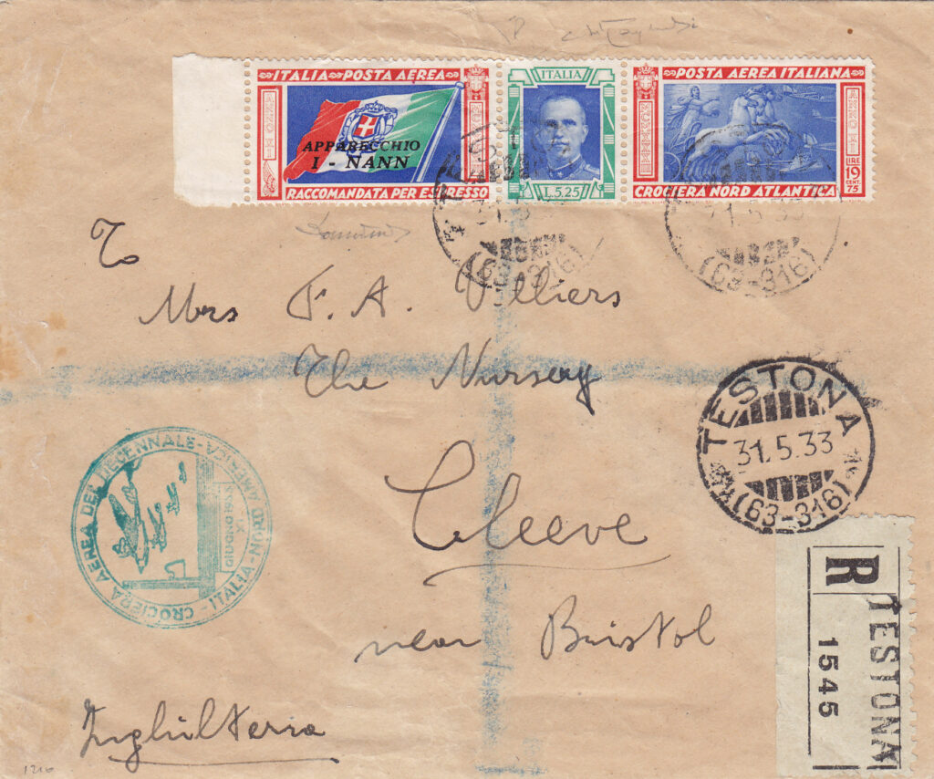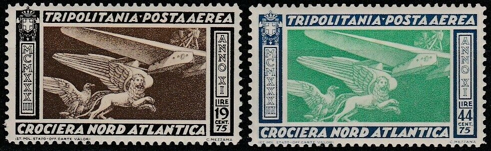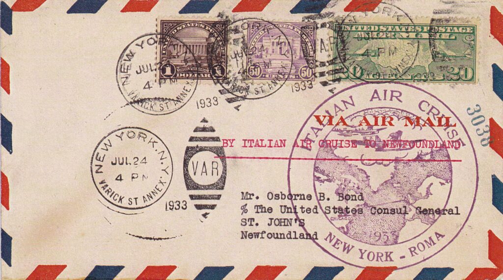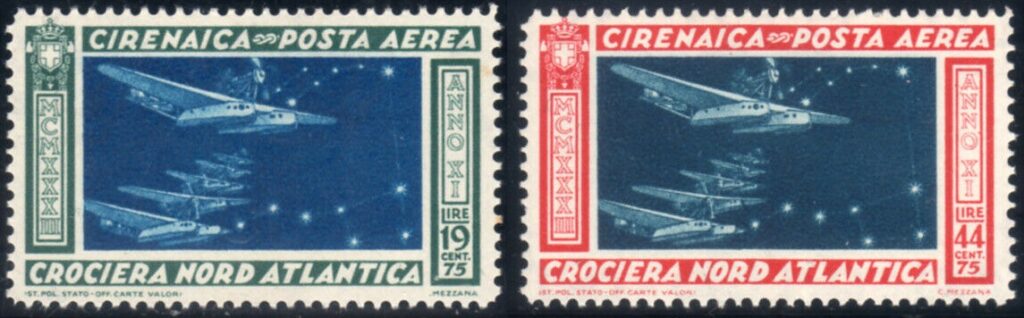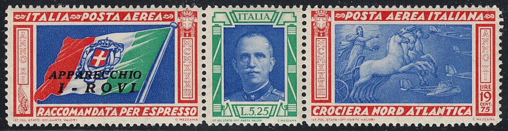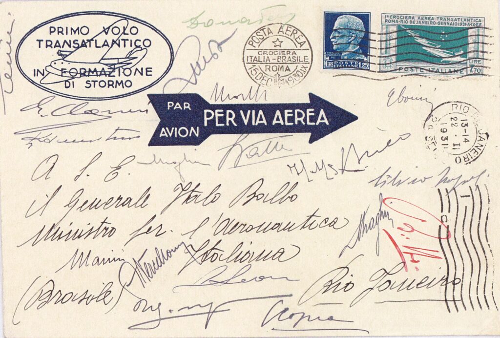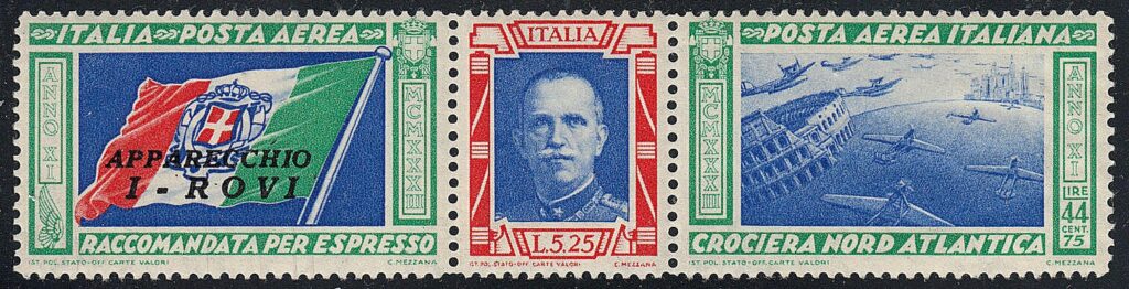 Essendo prevista la partenza per la seconda metà di giugno, fin dal 20 maggio sono disponibili presso gli uffici postali i francobolli speciali con i quali é possibile affrancare la corrispondenza che verrà trasportata dagli idrovolanti nella traversata atlantica. Essi erano formati da tre sezioni: la prima per la raccomandata espressa aerea, la seconda comprendeva il porto per la raccomandata e l’espresso per l’estero, la terza per la soprattassa aerea. Quest’ultima differiva a seconda che la corrispondenza era destinata in Europa o diretta in America.