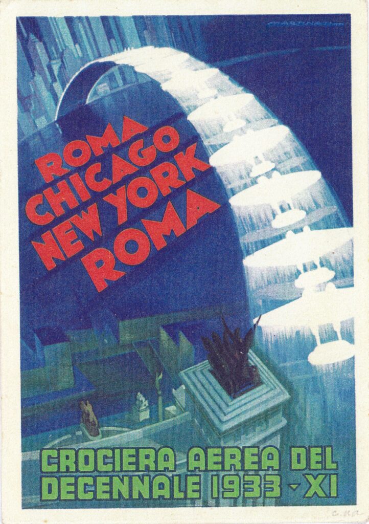 La tappa che da Chicago portò a New York iniziò mercoledì 19 luglio e costituiva praticamente la prima tappa del volo di ritorno, perché Chicago risultava essere il punto più lontano dall’Europa. Per il ritorno, alcuni trittici furono sovrastampati da una tipografia privata locale con la dicitura: “Volo di ritorno New York-Roma”. Ma la corrispondenza in partenza dagli Stati Uniti poteva essere affrancata solo con francobolli in uso nello Stato. Fu così che questi francobolli non furono messi in vendita e rimasero inutilizzati.
