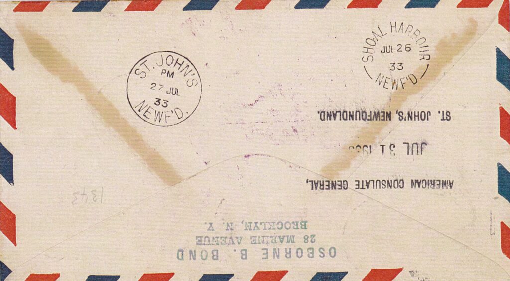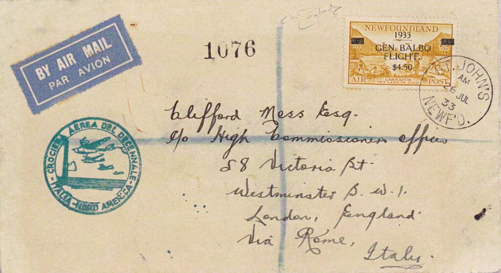 Da Shediac, la baia di Shoal Harbour viene raggiunta felicemente mercoledì 26 luglio, dopo poche ore di volo. Da Terranova partì pure un corriere per Roma con corrispondenza affrancata con i francobolli predisposti dalle poste di Terranova. Martedì 8 agosto si parte verso l’Europa, attraversamento Ponta Delgada e Lisbona. Gli idrovolanti ammarano parte ad Horta e gli altri a Ponta Delgada.
