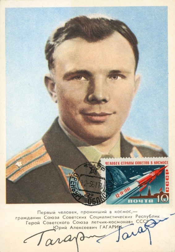 Figura 5 – La cartolina ufficiale con a stampa e la firma autografa di Juri Gagarin.