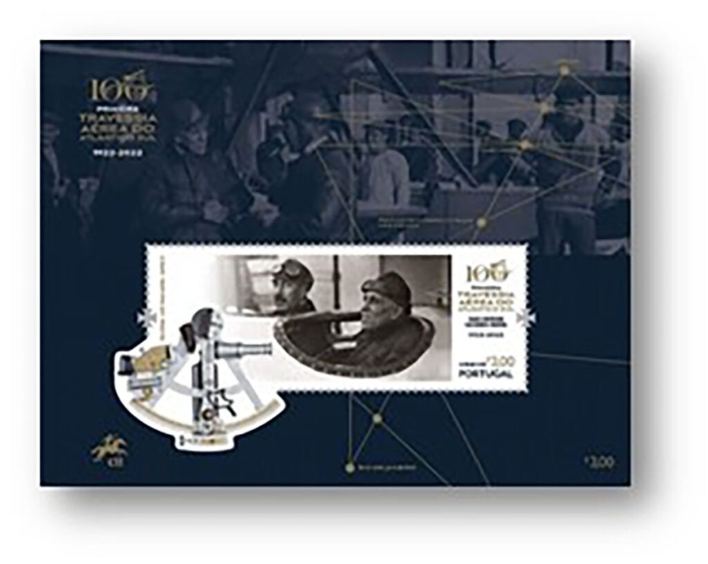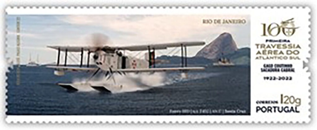 Il 30 marzo scorso le poste portoghesi hanno commemorato degnamente il centenario della prima traversata aerea dell’Atlantico meridionale, tra Portogallo e Brasile, attraverso l’emissione di una splendida serie di tre francobolli da I20g, corrispondenti a un valore nominale di 1,05 euro e di un blocco foglietto da 3.00 euro.