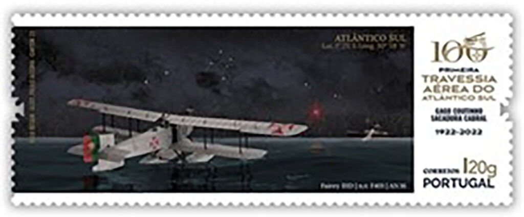 I tre francobolli emessi il 30 marzo scorso raffigurano i tre aerei utilizzati. Il primo, l’idrovolante Fairey IIID versione Mark II, F 400, denominato “Lusitania”, che decollò da Lisbona il 30 marzo 1922, all’alba; il secondo, l’idrovolante Fairey IIID, F 401, targato 16, che andò alla deriva l’11 maggio, dopo un ammaraggio di emergenza mentre veniva soccorso da una nave mercantile; il terzo, l’idrovolante Fairey IIID, F402, targato 17, che completò la Traversata il 17 giugno 1922 e fu poi battezzato “Santa Cruz” all’arrivo in Brasile.