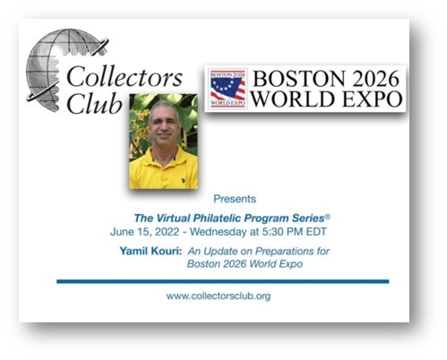 Come tutti sanno, negli Stati Uniti le grandi manifestazioni filateliche a carattere internazionale, si succedono con cadenza decennale. L’ultima si è svolta a New York nel 2016. Dopo dieci anni, nel 2026, sarà la volta di Boston, dove già fervono i preparativi per questo importante evento. Di esso conosciamo già le date, dal 26 al 30 maggio 2026 e la struttura dove avrà luogo, il Boston Convention and Exhibition Center. Un aggiornamento sui preparativi è presentato in questo video di 30 minuti predisposto dagli organizzatori sulla piattaforma del Collectors Club. Ad illustrarli è Yamil Kouri, che è il Capo e Commissario Generale di BOSTON 2026 WORLDEXPO.