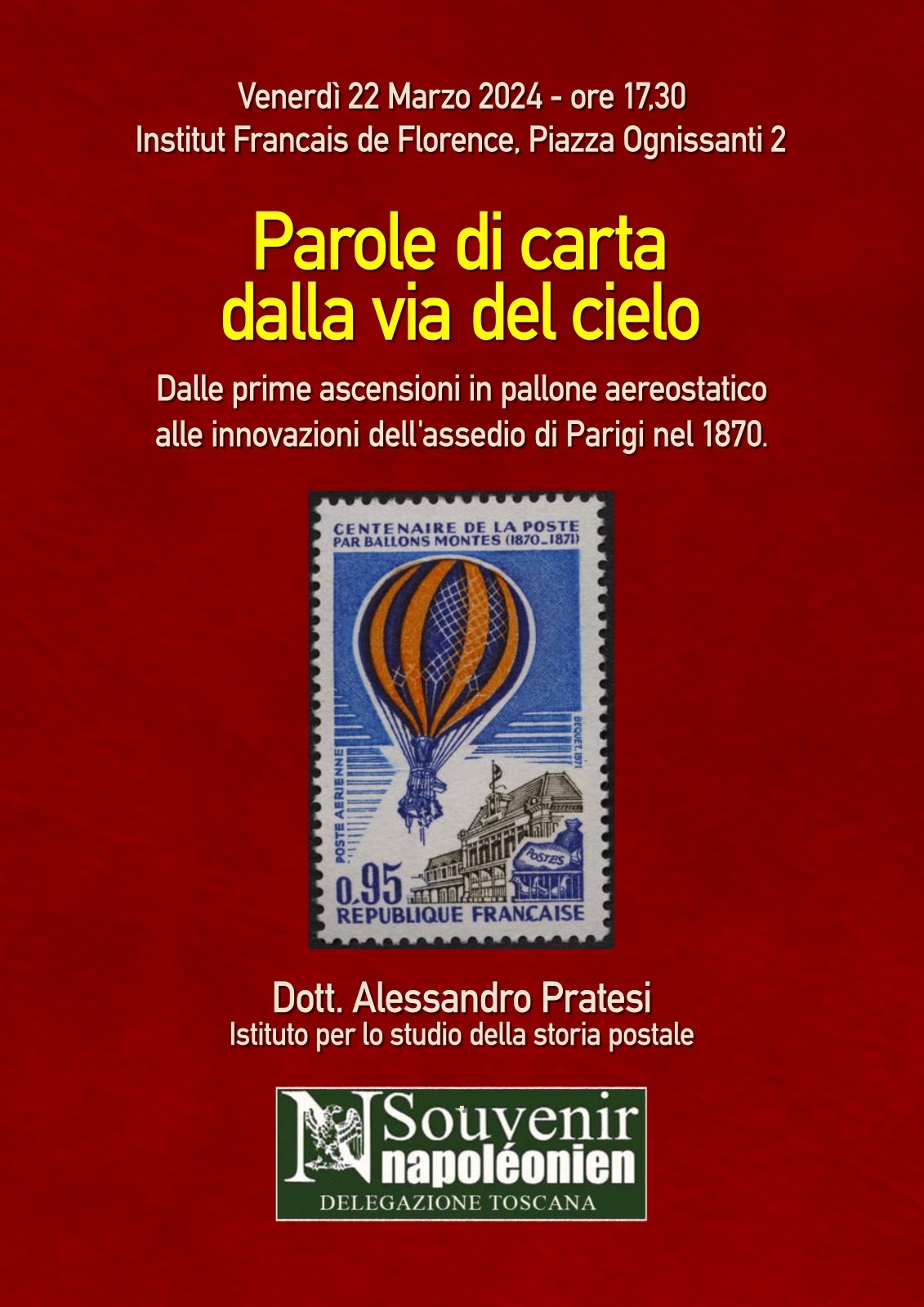 Una domanda importante, che è alla base e fonte di ispirazione per una conferenza sul tema che si terrà a Firenze il 22 marzo 2024, presso l’Istitut Francais de Florance, in via Ognissanti 2. Il relatore sarà il Dr. Alessandro Pratesi, membro dell’Istituto per lo studio della Storia Postale e anche socio della nostra associazione.