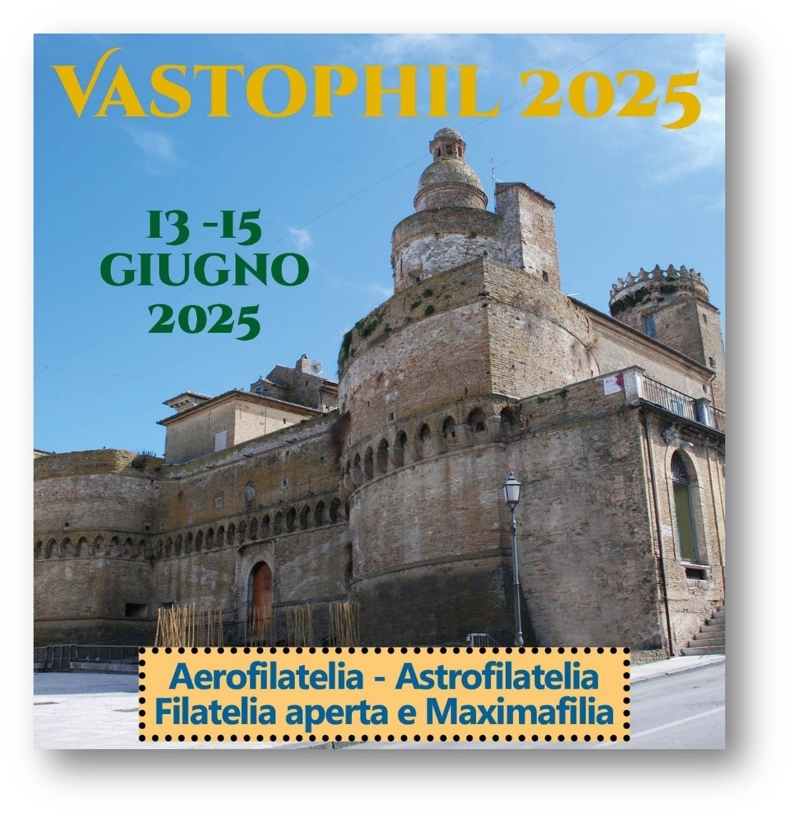La Federazione fra le Società Filateliche Italiane, in collaborazione con il Circolo Filatelico Vastophil “Rino Piccirilli” di Vasto, organizzerà Vastophil 2025 esposizione filatelica nazionale, dal 13 al 15 giugno 2025, a Vasto (CH) presso Palazzo d’Avalos – Piazza Lucio Valerio Pudente 1. L’esposizione è suddivisa nelle sezioni campioni e competizione nazionale ed è riservata aContinue reading “VASTOPHIL 2025”