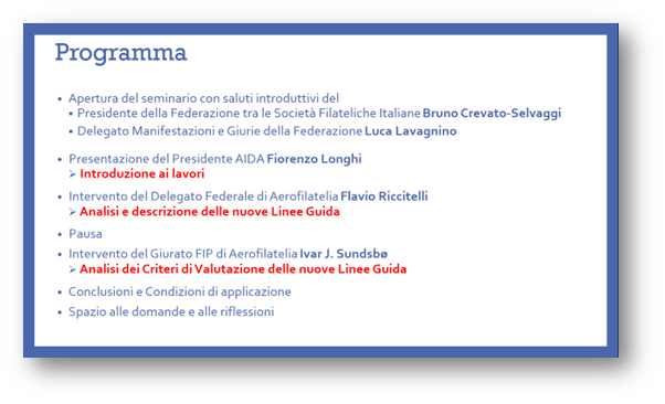 SEMINARIO FEDERALE DI AEROFILATELIA – 2022