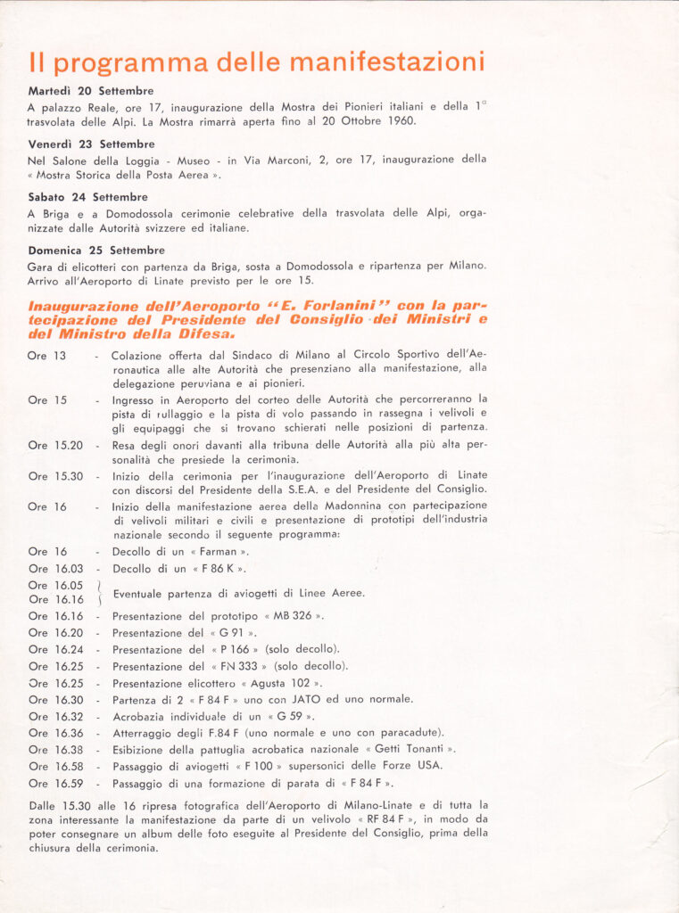 1960 – 50th Anniversary of Milan first International Air Circuit and first Alps Crossing – Milan