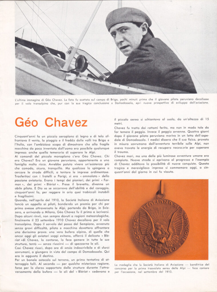 Below you can browse the brochure prepared for the occasion, which illustrated the event, including the program of the same and a small essay in memory of the Peruvian pilot Geo Chavez.