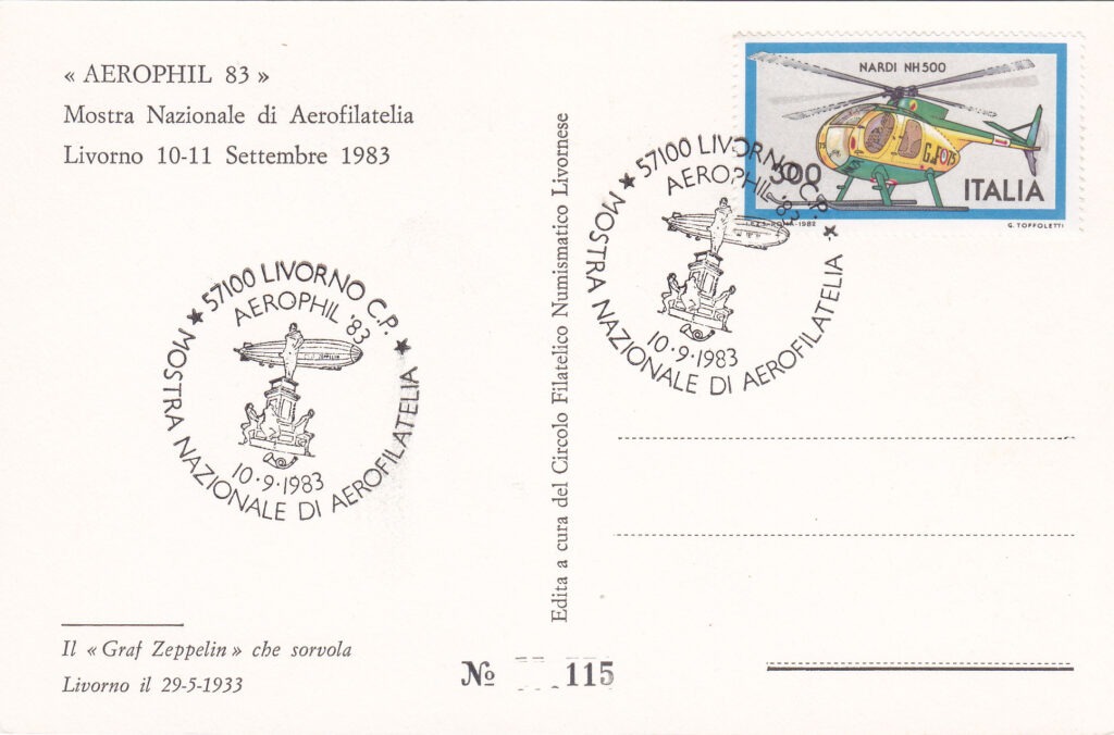 For the occasion, a single issue was also published, with numerous articles on the subject and a series of three special postcards, with drawings that recall the Zeppelin stamps designed by Corrado Mezzana, but with the cartoon that reproduces some glimpses of Livorno. They bear the special cancellation used at the post office present on 10 October in the exhibition premises.