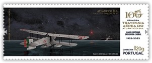 On March 30, the Portuguese post office worthily commemorated the centenary of the first air crossing of the South Atlantic, between Portugal and Brazil, through the issue of a splendid series of three I20g stamps, corresponding to a nominal value of 1.05 euros. and a 3.00 euro block of paper.
